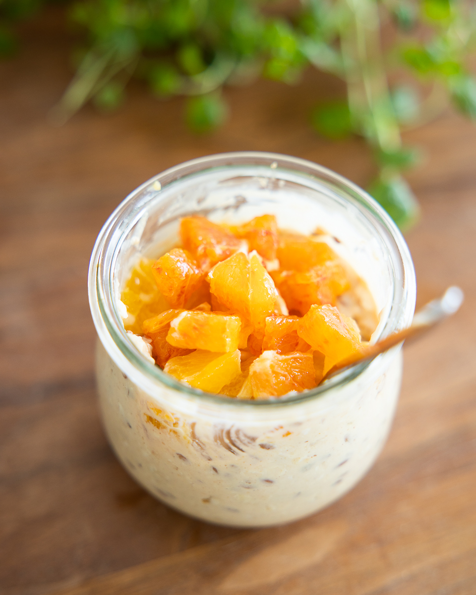 Tähän tuorepuuroon tulee lisäksi juuri nyt sesongissa olevia veriappelsiineja sekä pellavansiemeniä. Käytän itse nykyään tuorepuurojen joukossa aina kotimaisia pellavansiemeniä chiasiementen sijaan. Ne geeliytyvät ja kiinteyttävät puuron samaan tapaan ja sisältävät runsaasti hyviä rasvahappoja, mutta pellavansiemeniä kasvatetaan Suomessakin!