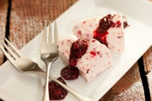 Vaniljaista puolukkajäädykettä ja kanelilla maustettua puolukkamelbaa. Ei huono!