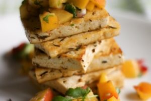 Tavallinen tomaattisalsakin on hyvää, mutta pidän yleensä enemmän hedelmäisistä versioista. Itse tehty hedelmäinen salsa on helppo valmistaa ja se toimii erinomaisesti paitsi tofun kanssa, myös tortillojen tai seitanin kaverina. Jos kärsivällisyys riittää tarpeeksi pienien hedelmäkuutioiden pilkkomiseen, voi tätä mainiosti nautiskella myös nachojen kanssa.