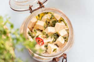 Oliiviöljyssä ja yrteissä marinoitu kaurapalafeta sopii sellaisenaan naposteltavaksi tai salaattien joukkoon.