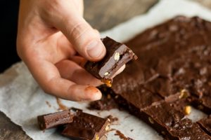 Piparkakkumuruilla, rouhituilla pähkinöillä ja rusinoilla höystetty suklaa on ihana herkku kahvin kanssa. Syö itse tai anna lahjaksi!