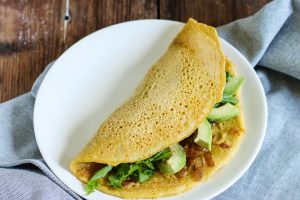 Päivitetty resepti kikherneomeletille. Helppo arkilounas tai viikonloppuaamiainen!