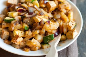 Tapaninpäivänä meillä syödään perinteisesti sitä, mitä jääkaappiin on sattunut unohtumaan ennen joulua. Tänä vuonna sieltä löytyi mm. maa-artisokkaa ja tofua, jotka päätyivät yhdessä paistinpannulle.