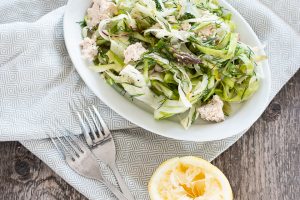 Varaslähtö parsakauteen! Raikas parsa-fenkolisalaatti sitruunakastikkeella.