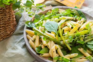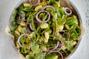 Kaupallinen yhteistyö Valio Oddlygood | Keväinen parsasalaatti, joka on höystetty vegaanisella savujuustolla.