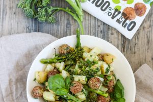 Yheistyössä Anamma – Grillatuista broccolineista, vegepyöryköistä ja uusista perunoista syntyy herkullinen kesäsalaatti.