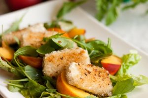 Panko -korppujauhoilla kuorrutetusta, rapeaksi paistetusta tofusta ja raikkaasta nektariinisalaatista syntyi ihana perjantailounas.