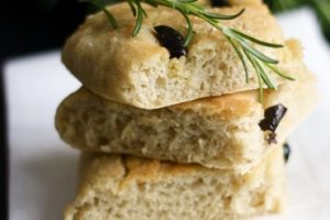Focaccia on litteä, uunissa paistettava italialainen leipä, joka voidaan päällystää esimerkiksi erilaisilla yrteillä, oliiveilla, valkosipulilla tai kasviksilla. Minä käytin tällä kertaa perinteisesti rosmariinia, oliiveja ja vuorisuolaa. Tuore rosmariini on kuivattua parempaa, joten käytä aina tuoretta, jos sitä on saatavilla.