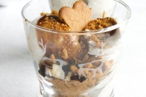 Tämä jouluinen jälkiruoka on ihanan makea sekoitus pehmeää jäätelöä, rapeita piparimuruja, kinuskikastiketta ja halvaa.