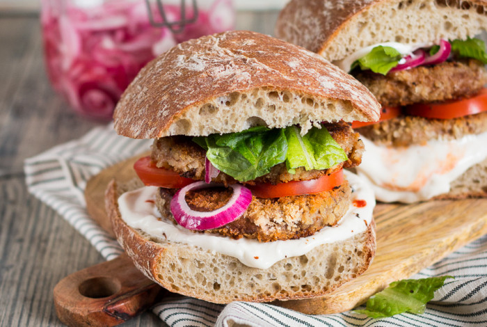 Yhteistyössä Anamma – rapeaksi leivitetyt Anamman pihvit, mehevät sämpylä ja hyvät lisukkeet, niistä on hyvä vegeburgeri tehty.