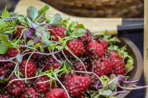 Vadelmista ja belugalinsseistä syntyy todella näyttävä ja herkullinen salaatti. Tästä kannattaa nauttia nyt, kun vadelmasesonkia on vielä vähän jäljellä!