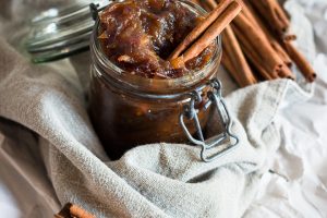 Vaalealla glögillä ja kanelilla maustettu taatelihillo on helppo tehdä.
