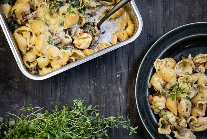 Tämä herkullinen uunipasta sisältää metsäsieniä ja Härkistä.