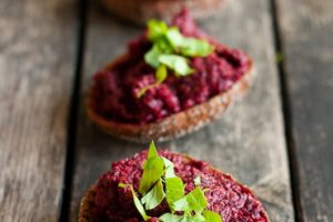 Paahdetuista punajuurista ja pikaherneistä syntyi helppo levite, joka sopii erityisen hyvin ruisleivän päälle!