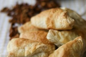 Löysin pakastimesta joulusta yli jääneen torttutaikinapaketin ja päätin tehdä pasteijoita. Teen pasteijoita harvakseltaan, mutta yleensä aina tällä perusreseptillä. Tällä kertaa innostuin jauhamaan täytteeseen vähän liikaa mustapippuria, mutta muuten näistä tuli oikein hyviä.