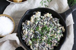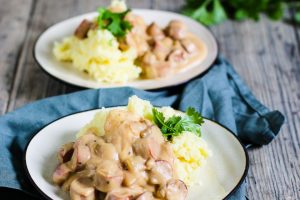 Ihana kermainen korvasienimuhennos ja uudet perunat. Parasta kesäruokaa!