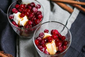 Kohmeisia karpaloita, vegaanista vaniljajäätelöä ja kuumaa kinuskikastiketta. Täydellinen joulujälkkäri!