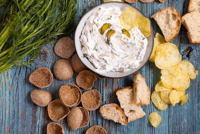 Amerikkalainen dill pickle dip on täydellistä sipsien dippailuun!