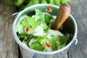 Perinteiset vanhanajan etikkakurkut ovat ihania, mutta tein niitä vaihteeksi aasialaisella vivahteella. Tilli vaihtui korianteriin ja silppusin joukkoon vähän chiliäkin. Nam!