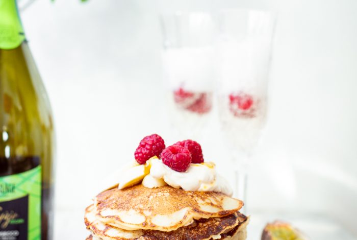 Pannukakuista tulee täydellisiä, kun taikinaan laittaa kuohuviiniä ja kermaa.