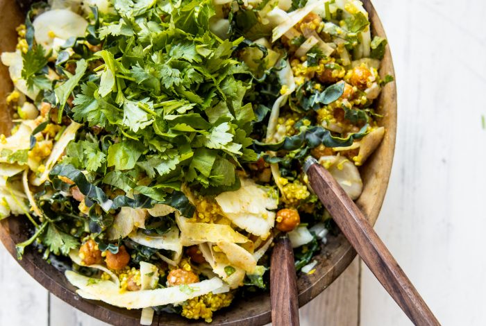 Tämä ruokaisa, yrttinen salaatti on täydellistä lounaaksi ja sopii myös mukaan otettavaksi!