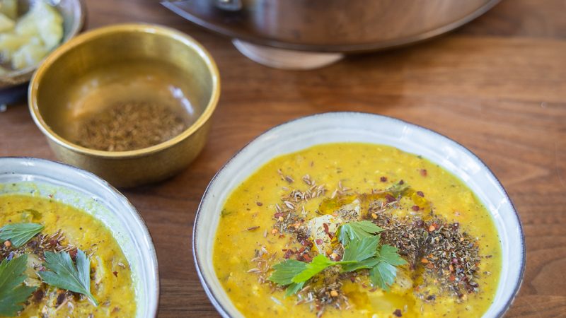 Mausteinen kasviksilla höystetty linssikeitto Palestiinasta.