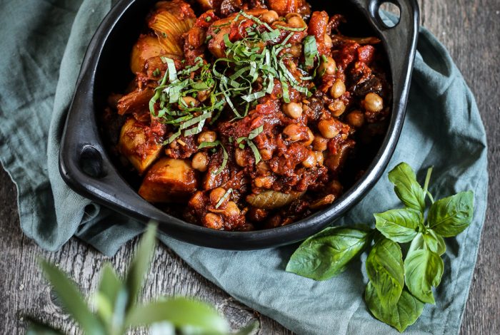Yhteistyössä Earth Control – Syksyinen pataruoka syntyy kikherneistä, kasviksiksta ja luumuista.