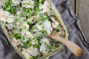 Valkosipulikermaperunat maa-artisokasta. Nam!