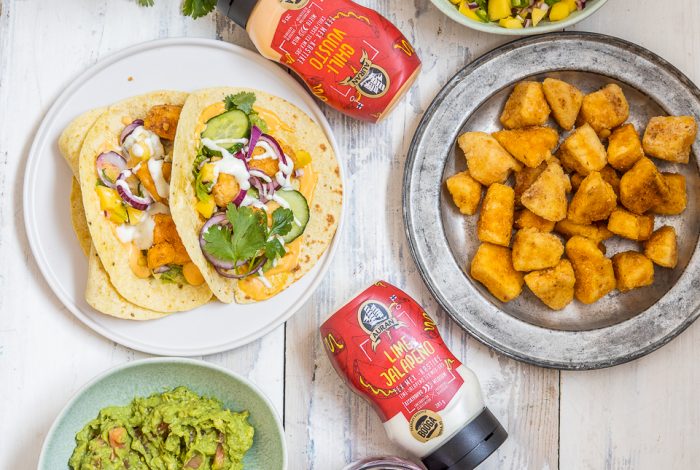 Kaupallinen yhteistyö Auran | Keväiset, rapeat tofutacot herkkukastikkeilla.