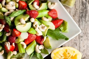Parsa-aika on nyt kuumimmillaan! Lähikaupassa sattui sopivasti olemaan lisäksi tarjouksessa pussillinen avokadoja ja torilta tarttui mukaan kilon rasia mansikoita, joten niistähän syntyi kevään raikkain salaatti.