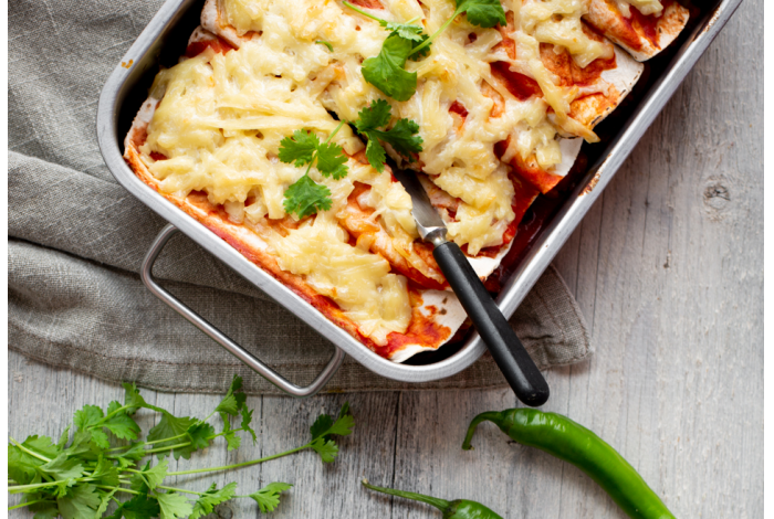 Kaupallinen yhteistyö Naturli | Syksy on helppojen uuniruokien aikaa. Vegaanisella jauhispaistoksella täytetyt tortillat paistetaan uunissa. Tämä ruoka taltuttaa synkimmätkin sadepäivät.