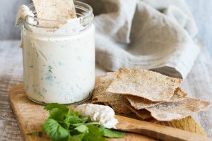 Tuoreella korianterilla höystetty valkopaputahna leiville ja dippailuun.