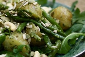 Uusia perunoita voisi syödä loputtomiin ihan sellaisenaan, mutta niistä valmistuu myös loistavia salaatteja. Tässä (taas) yksi ruokaisan peruna-papusalaatin ohje.