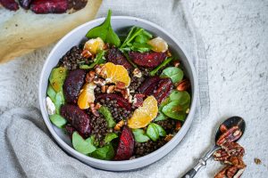 Yhteistyössä GoGreen – Granaattiomenan siemenillä jalostettu punajuuri-linssisalaatti on oiva lisuke joulupöytään tai mainio lounas ihan koska tahansa.