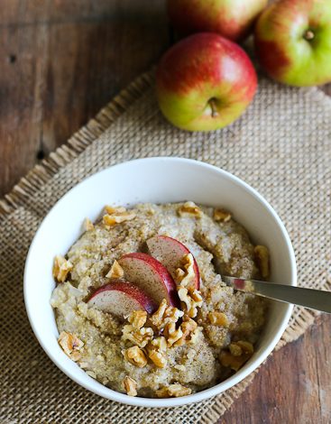 Omenan ja kanelin yhdistelmä kuuluu erottamattomasti syksyyn. Omenapiirakan leipomisen sijaan keitin omenalla ja kanelilla maustetun tuhdin puuron kvinoasta. Tällä lähtee ankeampikin syysaamu hyvin käyntiin!