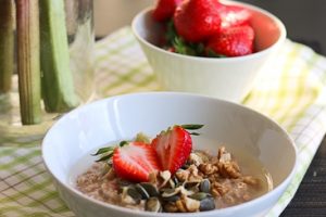 Yhteistyössä GoGreen – Kaurasta, raparperista, mansikoista ja kookossokerista syntyy mehevä paistos. Limellä maustetun kauravispin kanssa tämä herkku maistuu ihan kesältä!