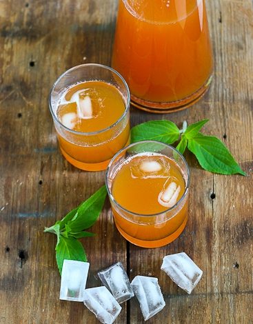 Aloitin ensimmäinen virallisen kesälomapäiväni tekemällä jääteetä raparperista ja rooiboksesta. Kyllä kelpaa! :)