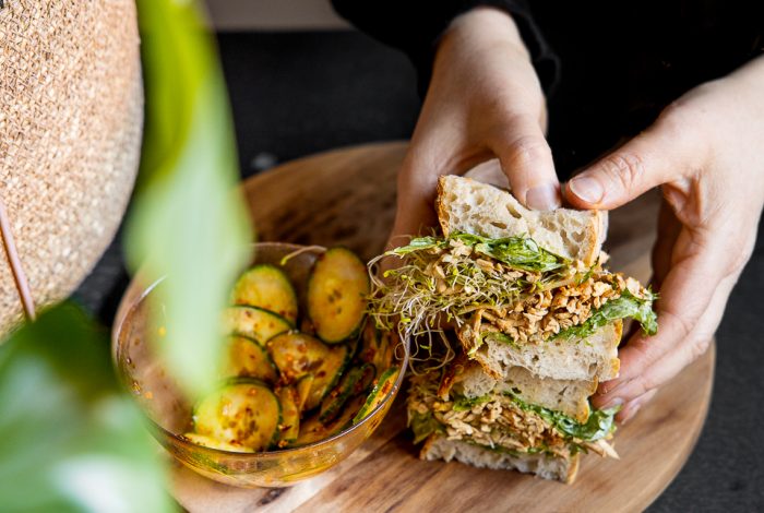 Täytetyt leivät aasialaisittain maustetulla tofulla ja herkullisilla lisukkeilla.