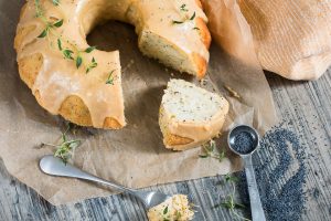Unikonsiemenillä höystetty timjami-sitruunakakku kruunaa kahvipöydän.