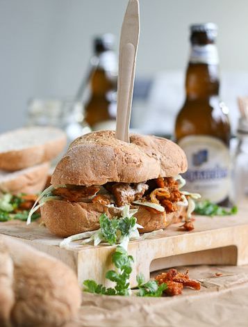 Katuruokahuuma on mennyt tässä osoitteessa vähän sivu suun, mutta nyt pääsin yhdistelemään Blogiringin ja Sinebrychoffin kampanjassa olutta ja sen kanssa sopivaa katuruokaa. Syntyi nyhtöpossuleipien vegaaniversio vehnäoluen kera!
