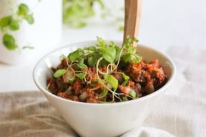 Erilaiset pataruoat sopivat loistavasti syksyyn! Munakoisosta ja soijarouheesta syntyy täyttävä ja herkullinen arkiruoka.