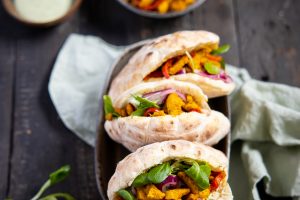 Shawarma-maustetut soijasuikaleet ja minttutahini on täydellistä pitaleipien välissä!