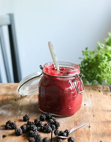 Sokeriton karhunvatukka-omenasose