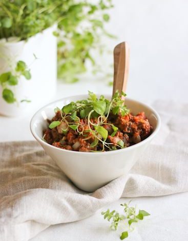 Erilaiset pataruoat sopivat loistavasti syksyyn! Munakoisosta ja soijarouheesta syntyy täyttävä ja herkullinen arkiruoka.
