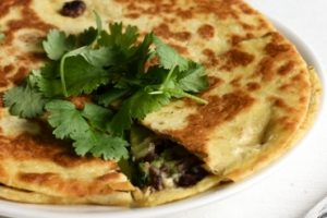 Mustapavuilla, avokadolla ja soijajuustolla täytetyt quesadillat ovat supernopea arkiruoka, tai miksei myös viikonlopun krapula-aamiainen.