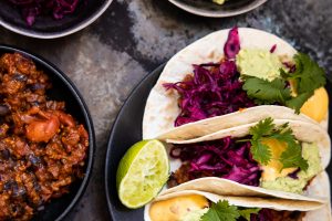 Herkulliset talviset tacot maukkalla Härkis-mustapaputäytteellä ja marinoidulla punakaalilla.