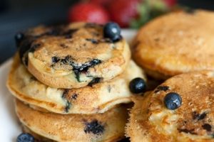 Meille tuli yövieraita, joten sain hyvän tekosyyn tehdä amerikkalaisia pannukakkuja aamiaiseksi, tällä kertaa mustikkaversiona.