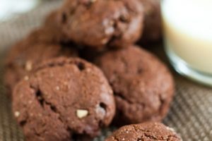 Rasvaiset makadamiapähkinät ja suklaa on ihan mahtava yhdistelmä, joten ei liene epäselvää, että kombinaatio toimii myös kekseissä. Nam!