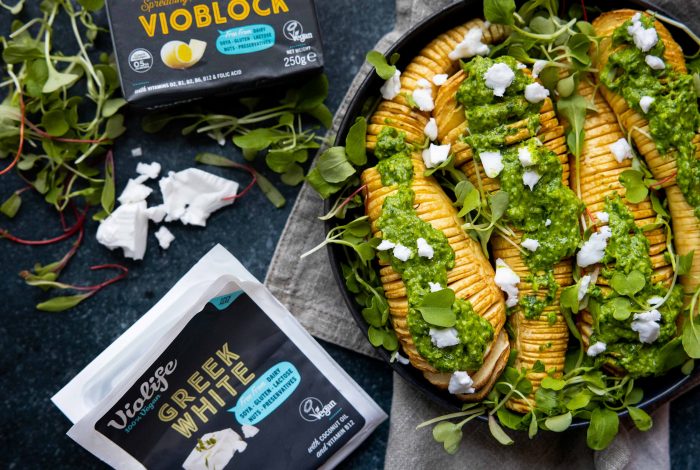 Hasselbackan palsternakat ja vegefeta-pinaattipesto